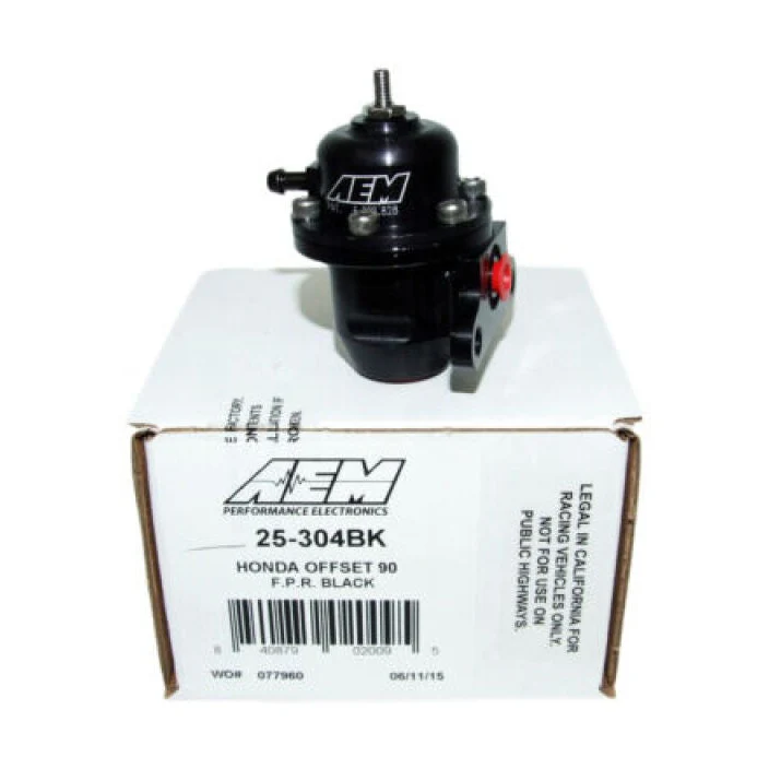 The AEM Adjustable Fuel Pressure Regulator 25-304BK is engineered for precision fuel control in high-performance Honda and Acura applications. Supporting engines up to 1000 horsepower, this regulator features AEM’s patented interchangeable discharge port system, allowing tuners to tailor fuel flow to match specific pump output and system requirements. The included large discharge orifice ensures consistent fuel pressure and optimal flow across a wide range of setups, making it ideal for both street and racing builds.